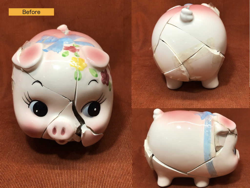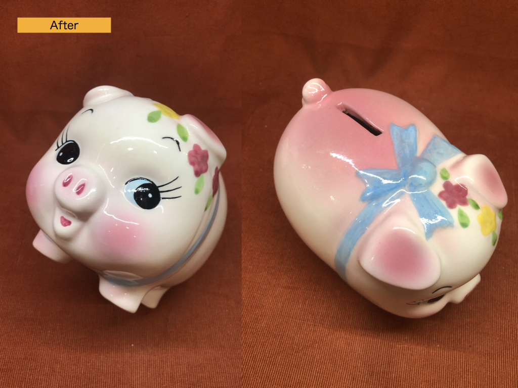実際にレストーレで修復した豚の貯金箱